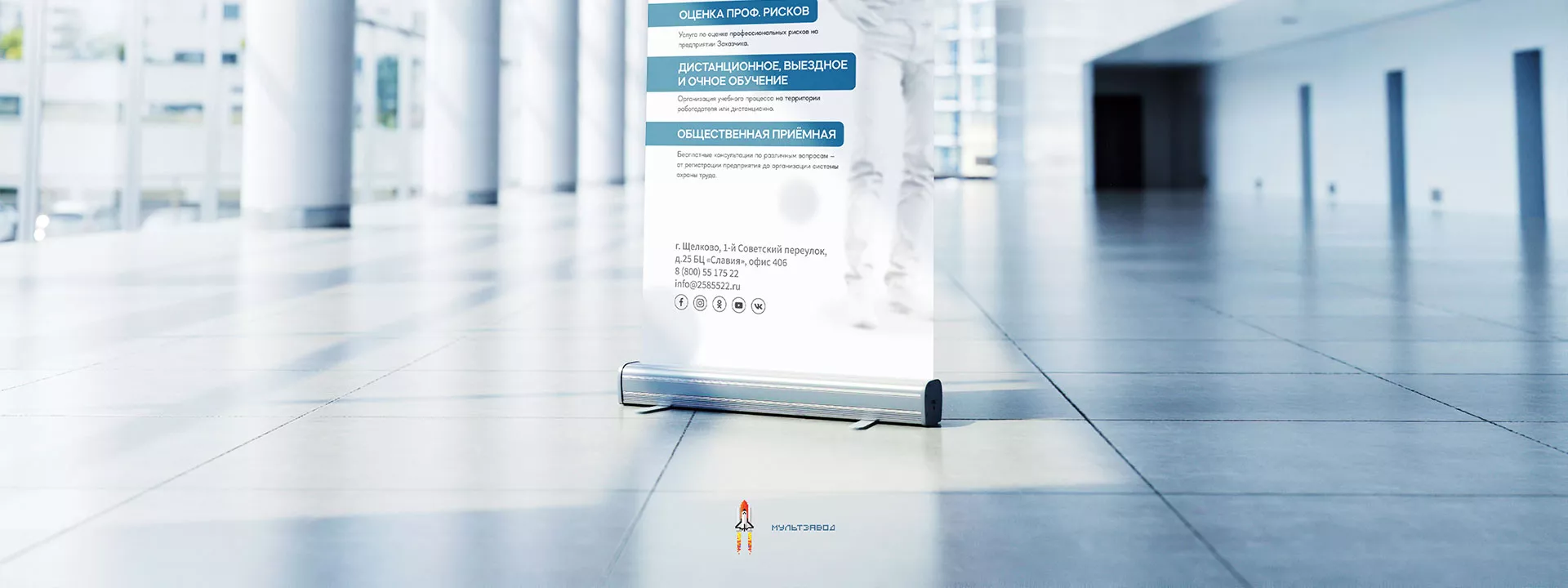 После разработки фирменного стиля и создания сайта, мы приступили к разработке дизайн-макета ролл-ап стенда в Гдове для учебного центра «Вертикаль».